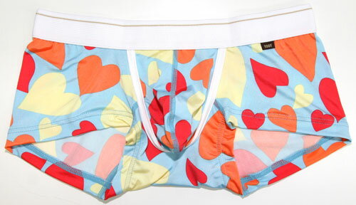カラフルなハート柄プリントのボクサー◎です!伸縮性に優れたポリエステルストレッチとカップ周りのコットン素材によるバインダーの程良い締め付けが絶妙なフィット感を実現!見た目も勿論ですが、履き心地もバッチリなウルトラマイクロボクサー。